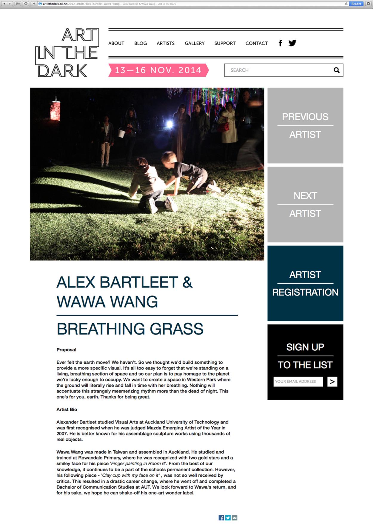 We convinced Auckland's annual Art In The Dark festival that we could create an outdoor installation, one that would remind people that this planet is a living breathing Earthling. And somehow we pulled it off and made it onto TV ONE's Breakfast show.